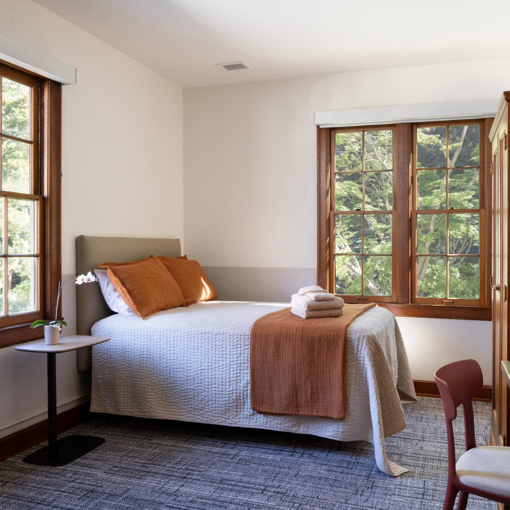 Now entering a new chapter, Santa Sabina has been renovated to serve as the dedicated campus of the Hoffman Process. Thoughtfully redesigned for the next generation of seekers, the retreat features a light-filled classroom, a welcoming dining hall and kitchen, and 47 private bedrooms designed for rest and renewal.
